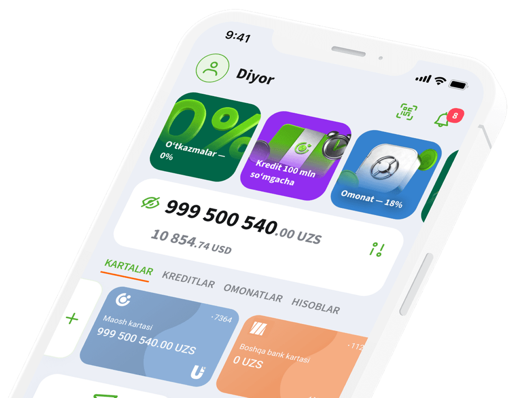 Ish haqi loyihasi va "Ipoteka-bank"ning boshqa xizmatlaridan foydalanish imkoniyatiga bir necha soniyada ega bo'ling